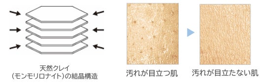 多層の結晶構造を持つミネラル豊富な天然クレイを配合。結晶の間に洗顔料では取り除けない古い角質や毛穴汚れにアプローチして、うるおい溢れるキメの整った肌に整えます。