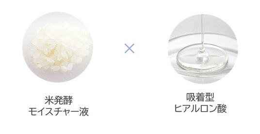 肌のキメ・うるおいを高める独自成分「米発酵モイスチャー液」を配合。また「吸着型ヒアルロン酸」が洗い流したあとも肌に留まり、うるおいのベールで肌をやさしく包み込みます。