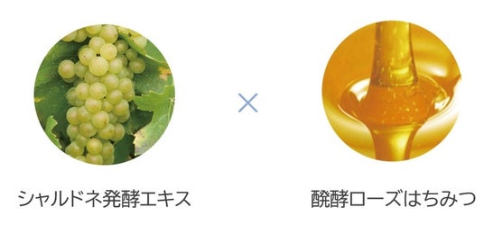 肌のゴワつきの原因である古い角質に着目。肌を柔らかく整える「シャルドネ発酵エキス」をはじめ、「発酵ローズはちみつ」なども配合。光をたたえる肌へ整えます。