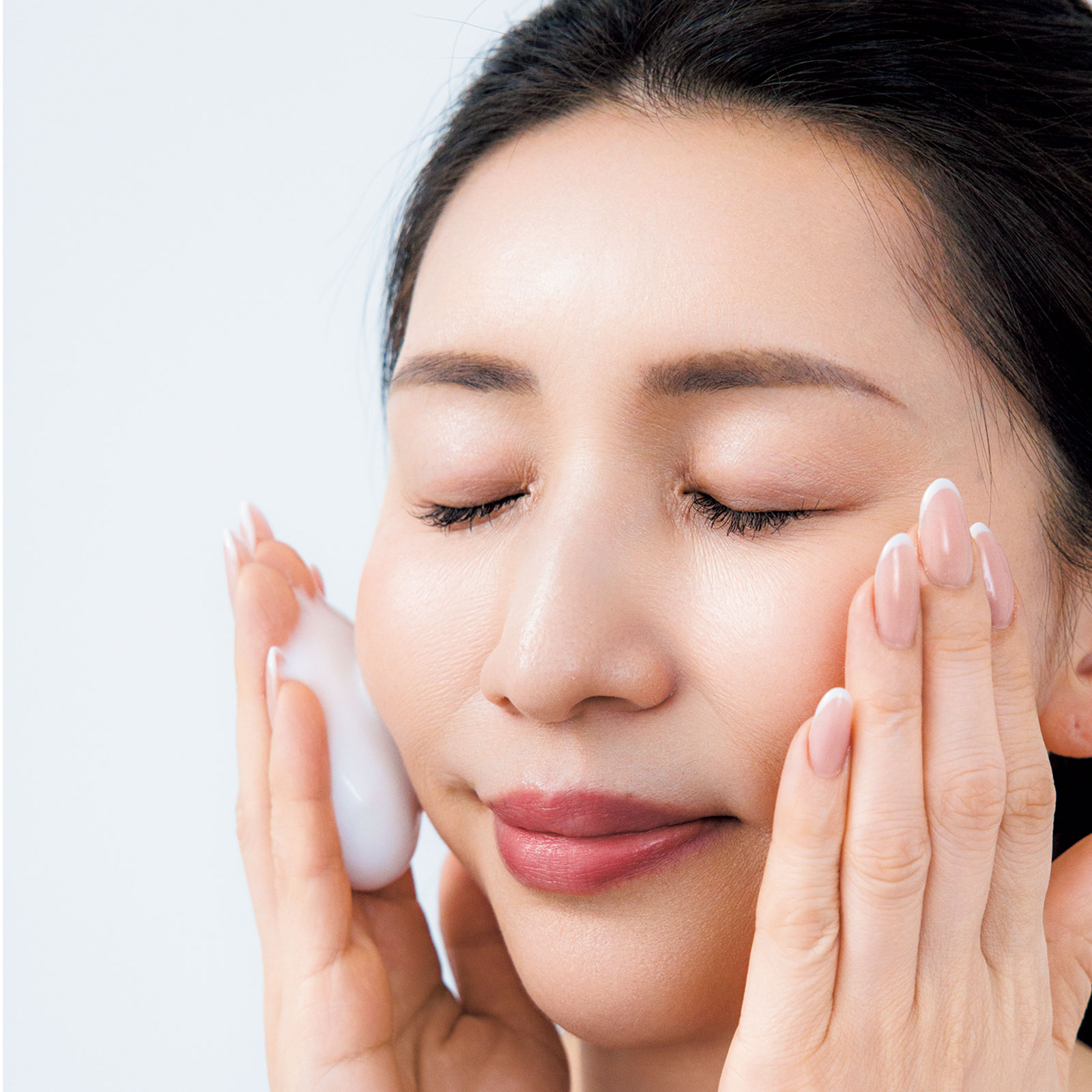 もともと乾燥肌ですが、50歳を過ぎてさらに乾燥を感じるようになりました。だから保湿を重点的に。炭酸泡洗顔で血行を上げてから、化粧水は肌にグングン浸透するものを選んで必ず重ね付け。たっぷりと入れた水分や美容成分を逃さないように高機能クリームで肌バリアを作って、朝まで潤いを持続させています。