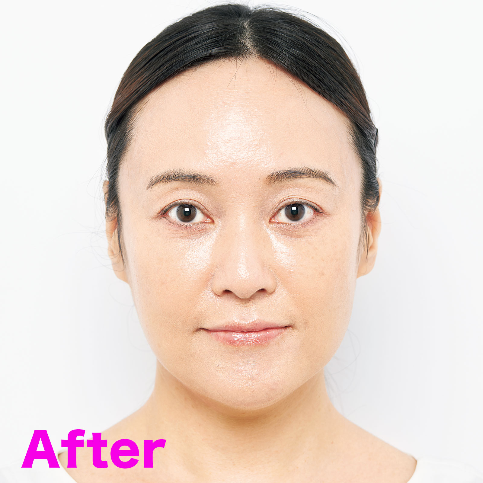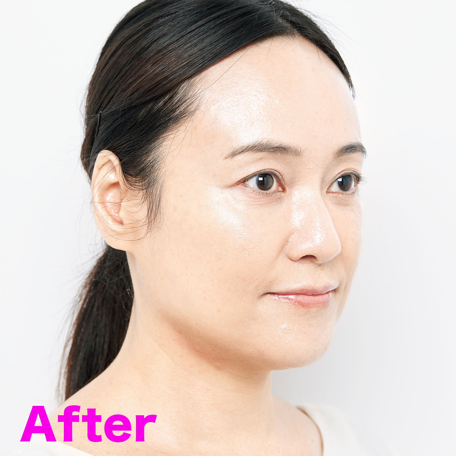 「こっくりしているけれど柔らかいテクスチャーで、あっという間に肌に浸透していくような使用感。直後から肌がキュッと持ち上がるような感覚が。翌朝の肌はツヤツヤかつぷりっとしたハリが出て毎日のモチベーションがアップ。輪郭も引き締まりました」。