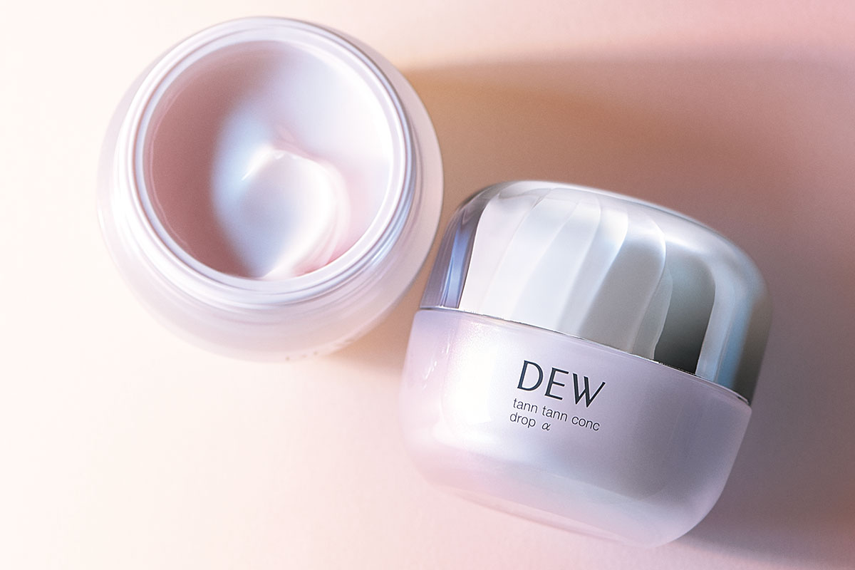 ピンッとしたハリが生まれて、頰の位置が上がって、輪郭が引き締まる。そんな即効性のあるハリ出しクリームがこの秋は大豊作!今回は「DEW」をご紹介!
