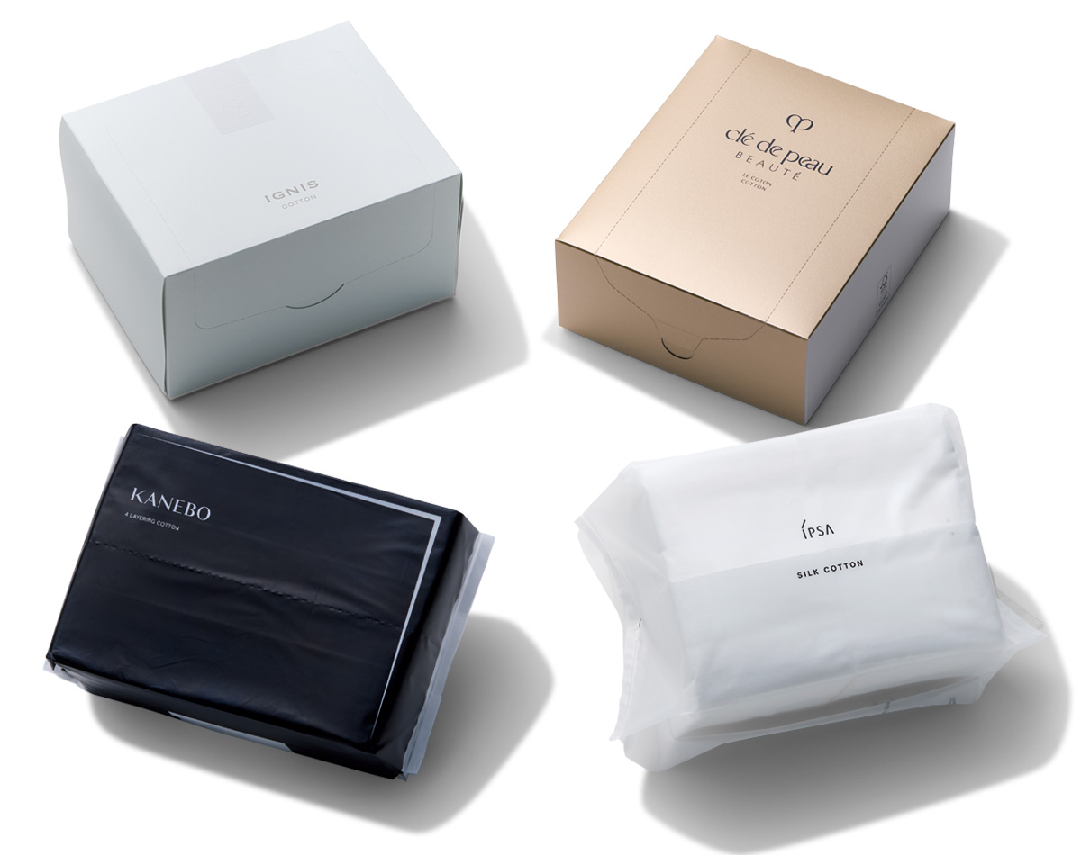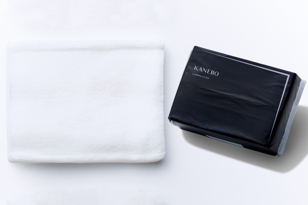 割いて使える4枚重ねタイプ。表面に細かい凹凸があり拭き取りにも適している。サイズ/6×8cm 4 レイヤリング コットン 100枚 ¥1,100(カネボウインターナショナルDiv.)
