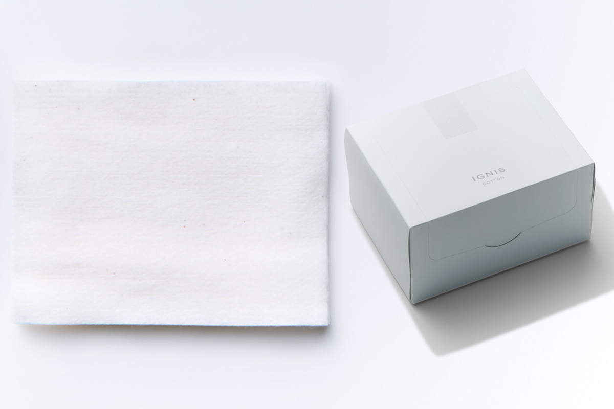 オーガニックコットンの表面にシルクを纏わせて優しい肌あたりに。化粧水の成分をしっかりと届け、滑らかな肌へ。サイズ/6×7.5cm ル・コトンⅡ 120枚 ¥1,100
