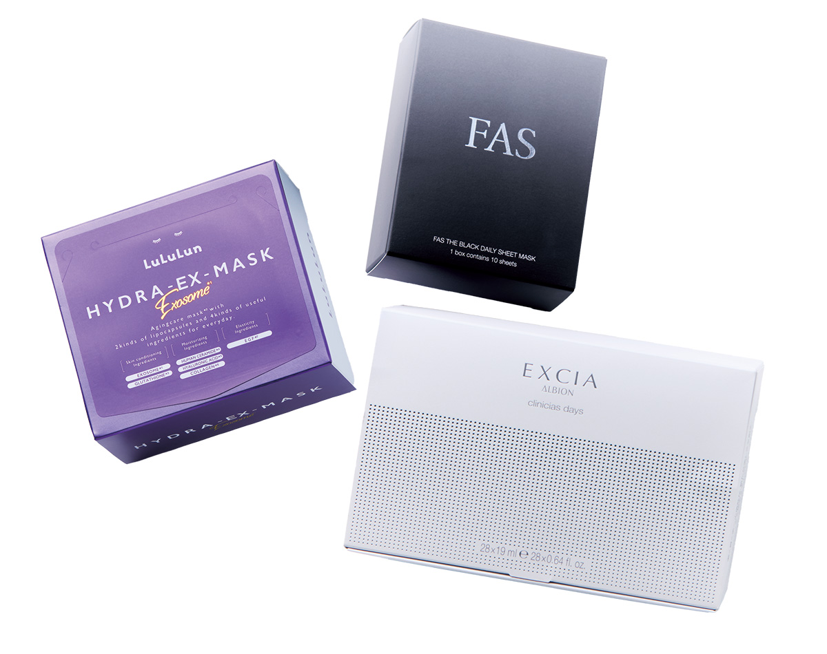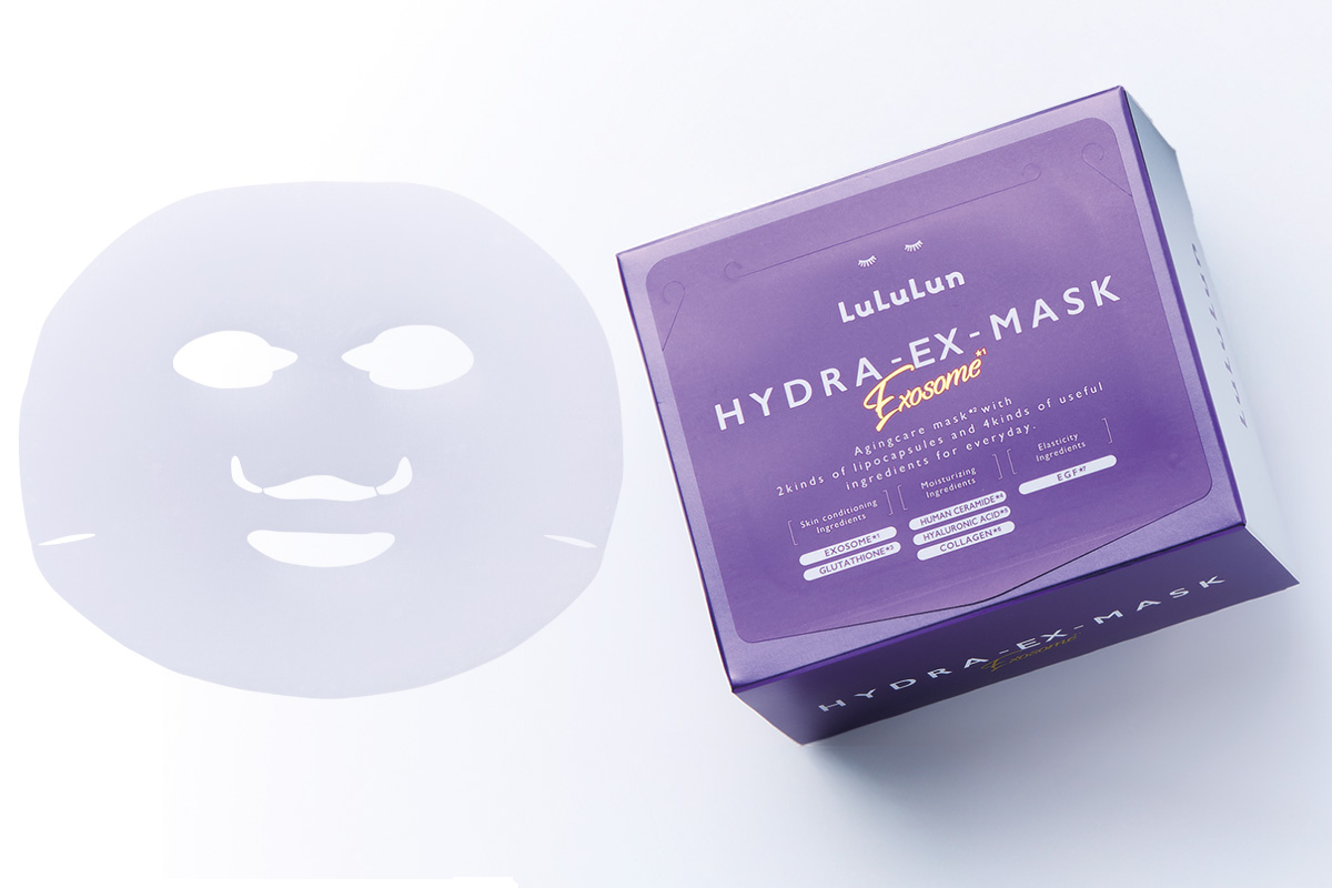 ヒト脂肪由来間葉系細胞エクソソームとグルタチオン配合。保湿しながら、透明感のあるハリ肌に。顎の脇に切り込みがあり、フェイスラインを引き上げてのフィットを実現。ハイドラ EX マスク 28枚 ¥2,640▶詳細はこちら(公式サイト)