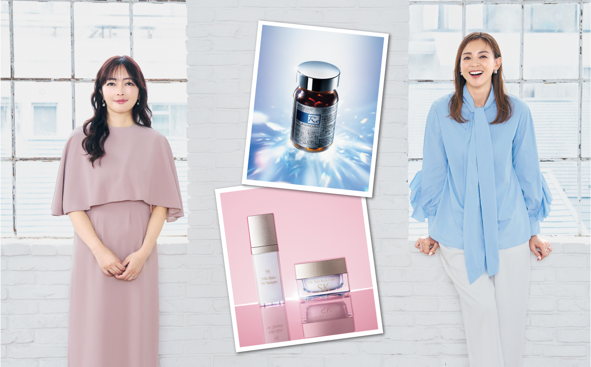 右:メラニン生成を抑え、くすみがちな肌を底上げ。