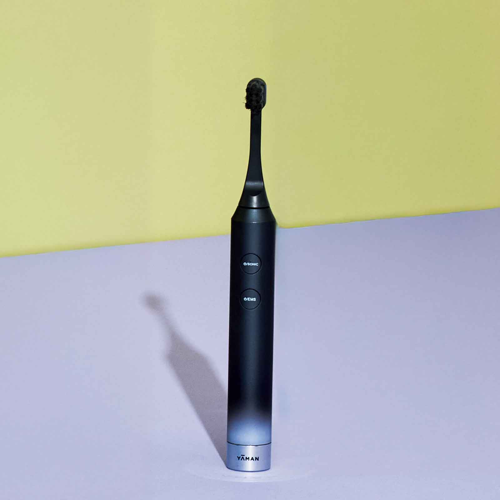 EMS電極をブラシ部分の裏面に搭載。歯磨きをしながら、口腔内から深層表情筋にアプローチして、リフトアップ。口腔内専用に開発したEMSの波形を採用しているので、効率的なトレーニングが叶います。EMSのレベルが6段階から選べるのも嬉しい。使い続けることで、顔全体のすっきり感や口元の引き締まり、表情筋ストレッチ効果が期待できます。防水仕様なので、お風呂場でも使えるし、衛生的なのも◎。¥33,000(ヤーマン)