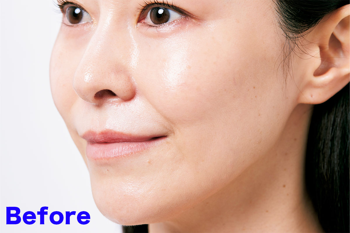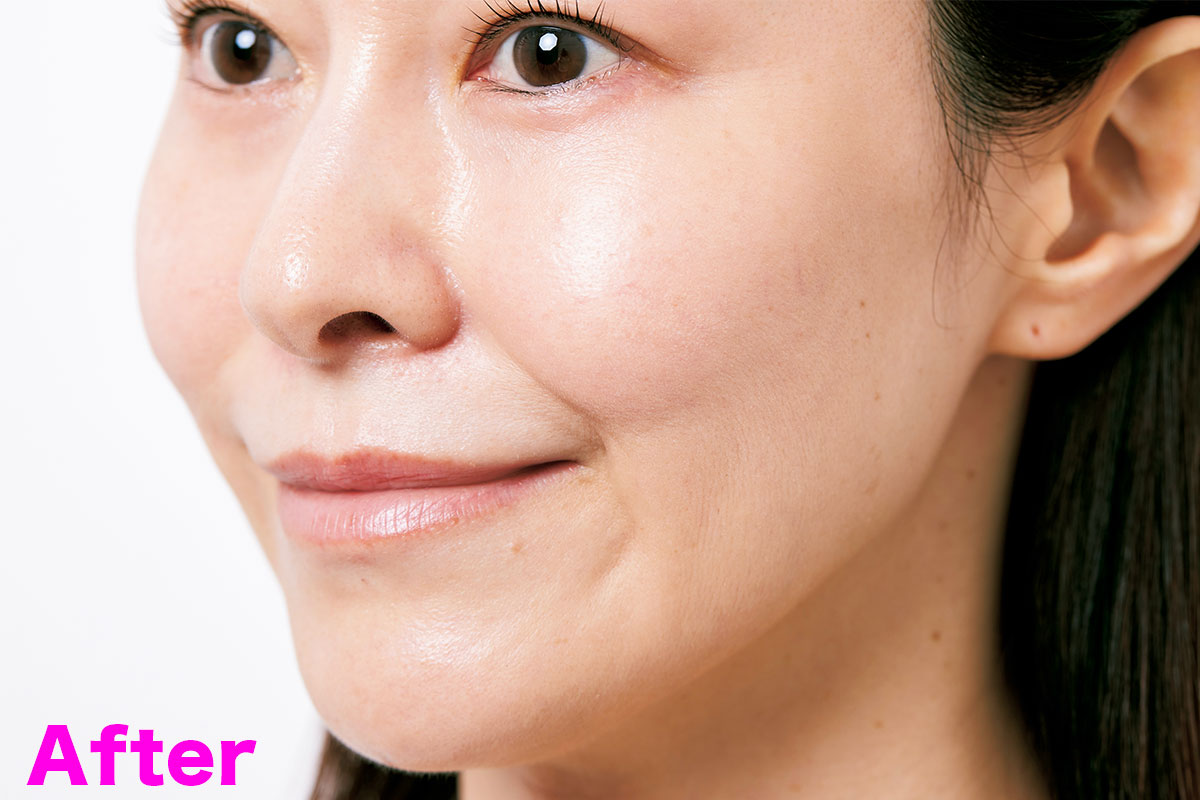 肌の触り心地がなめらかになり、ツヤ感も格段にUP。あごのラインもキュッとしました。「笑った時にどうしても出てしまっていたゴルゴライン。顔のマッサージをしても取れなかったのが、たった1週間の使用で気にならなくなりました!」