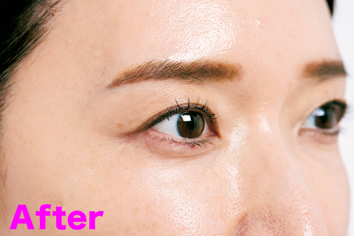 顔の凹み、カゲがふっくらするだけで顔全体が若々しい印象に。「使い始めてすぐに顔のハリを感じることができたのですが、中でもこめかみ部分の年齢痩せしてしまった部分のカゲ感が気にならなくなったのが驚き」