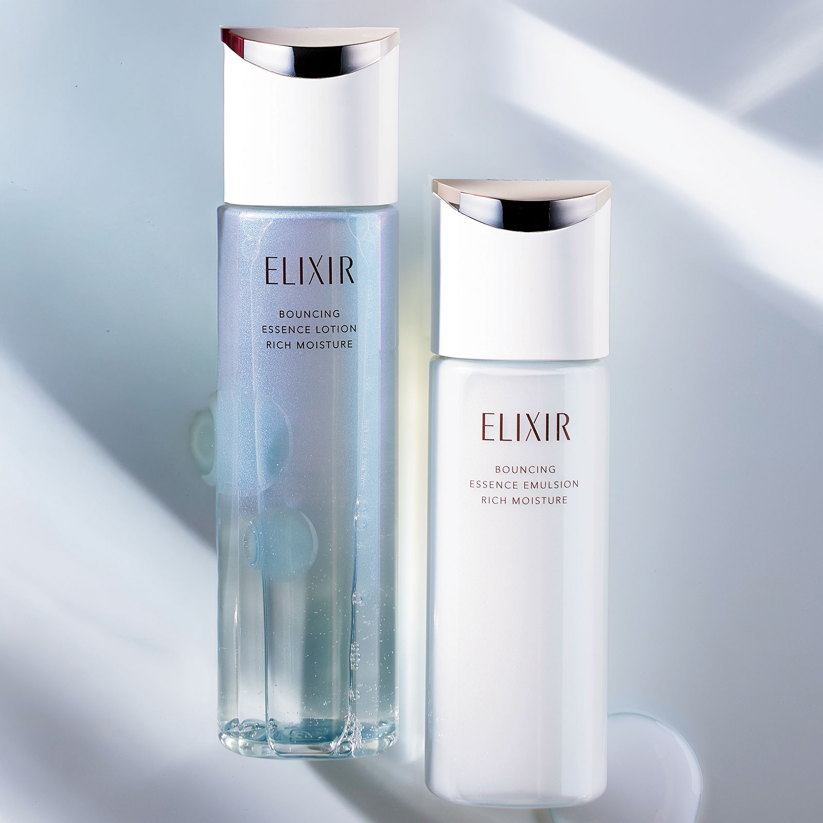 左:ハリやうるおいだけではなく乾燥小ジワや大人毛穴にまでアプローチ。独自の浸透型保湿成分で角層深くまで保湿。170ml ¥3,410 右:水分をたっぷり肌に留めておける独自処方で、肌に自然なツヤ感を。130ml ¥3,960[ともに医薬部外品](ともにエリクシール)