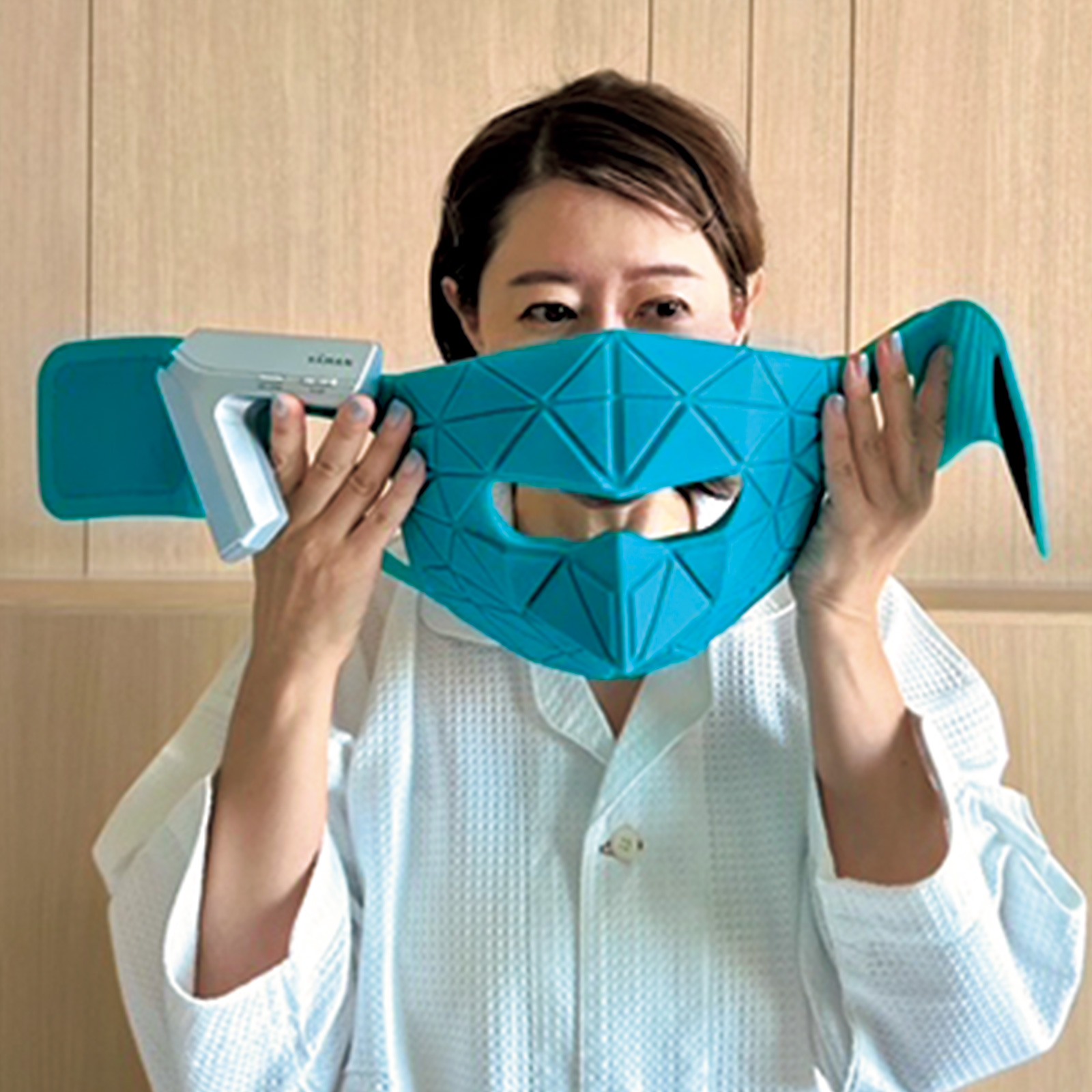 「朝は青緑LEDとEMS、夜は赤色LEDのみ使用。装着するだけで目元を含めた全顔のケアができるのも続く理由の1つです」(舘野さん)