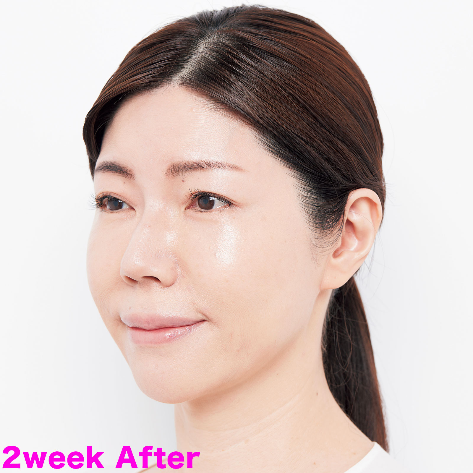 使い始めてすぐに肌の調子が安定したのを実感。2週間で頰や額中心にハリ感がアップ。35日間たっぷり使用で手触りがもっちりしてツヤがプラス。肌のトラブルがなくなって夕方も落ちないご機嫌な肌に。