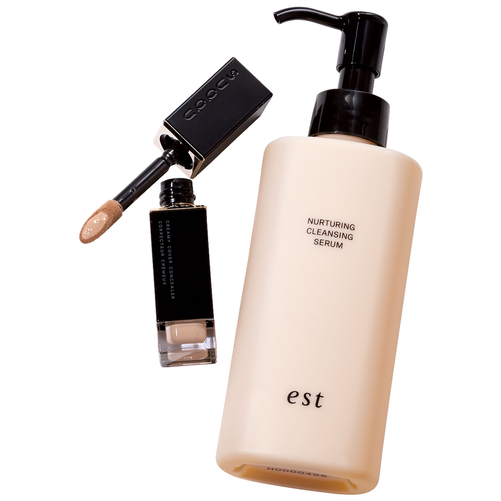 右:「なるべく肌の摩擦を少なくと心がけている中、ハンドプレスでクレンジングができるという発想に感動!」 180ml ¥4,400 (エスト)