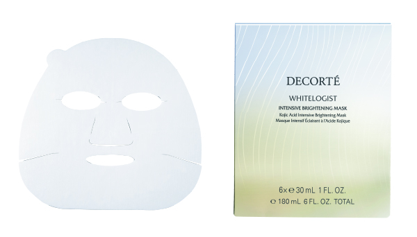 美白エッセンス1本分を1枚にたっぷり含んだマスクで速攻集中ケア。フィット感も抜群。1回10分でうるおい澄みわたるような透明感へ導く。[医薬部外品]30㎖×1枚 ¥2,420、30㎖×6枚入り ¥12,100