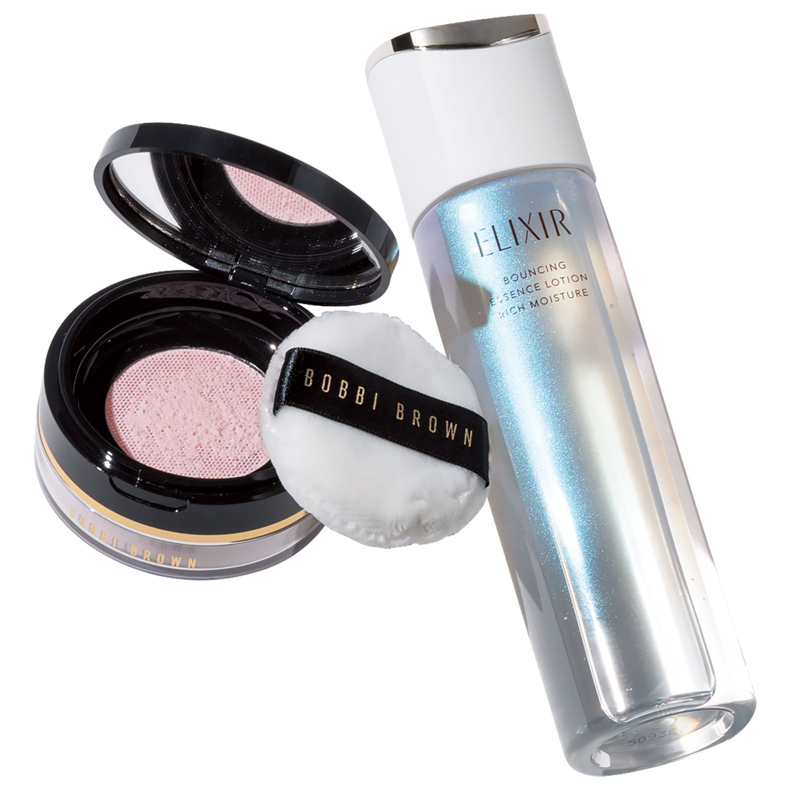 左:「粉っぽくならず、透明感アップ。下地やファンデのツヤもキレイに見せてくれます」 ¥8,690 (ボビイ ブラウン)