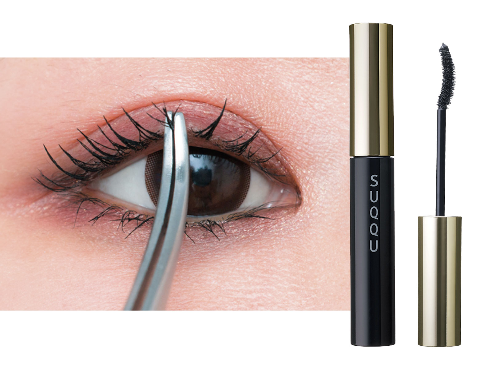 目元にオーラを宿す艶やかなブラック。水、皮脂にも強くお湯オフOK。繊維不使用ながら、自然に長いまつ毛を実現。3D アイラッシュ マスカラ ¥4,730(SUQQU)