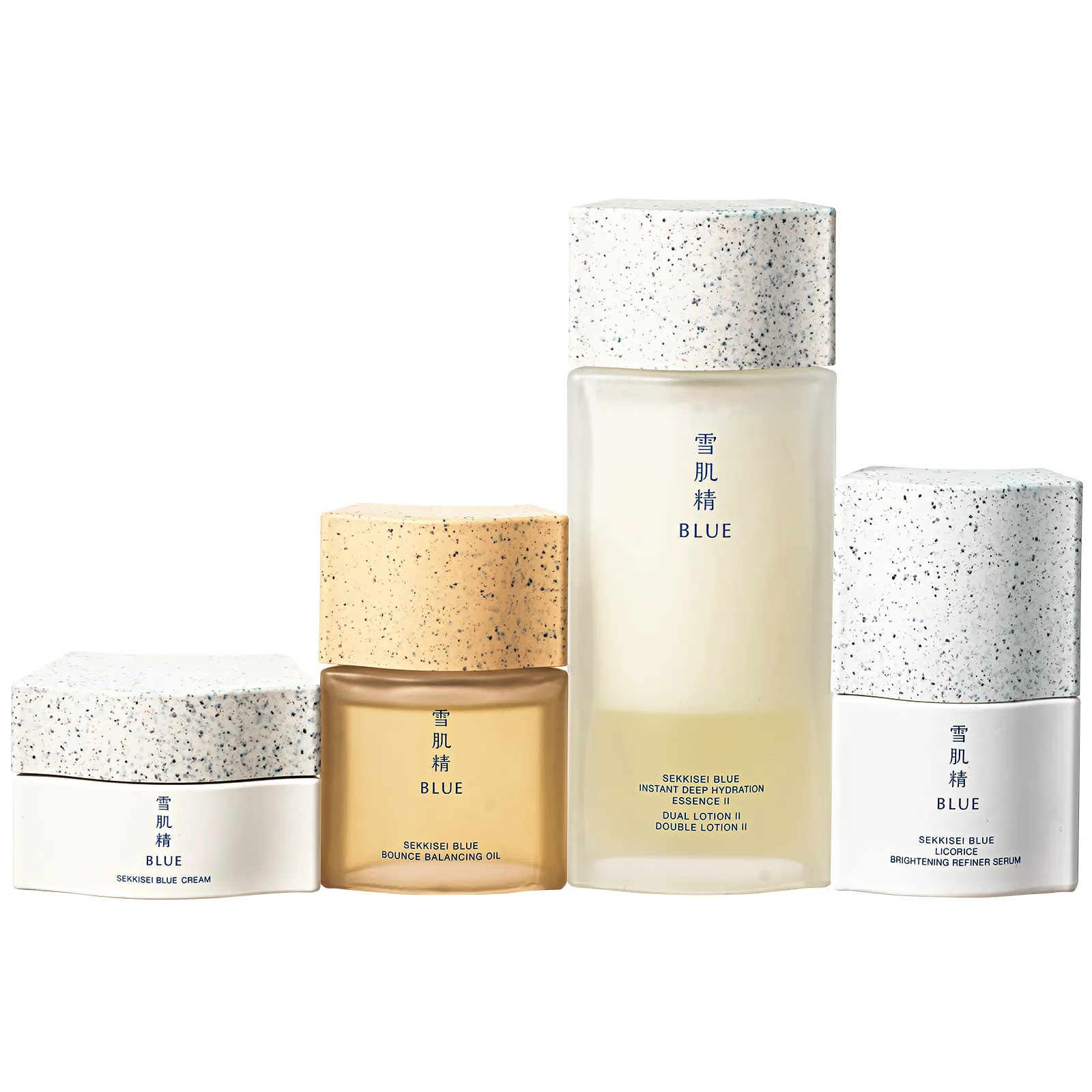 健やかな肌と心をサポートするホリスティックライン。左から、スムース ハイドレイティング クリーム 50g ¥8,800、バウンス バランシング オイル 30ml ¥8,800、クラリファイング トナー 180ml ¥4,950、ブライト リファイナー 30ml ¥9,900〈すべて編集部調べ〉(すべてコーセー)