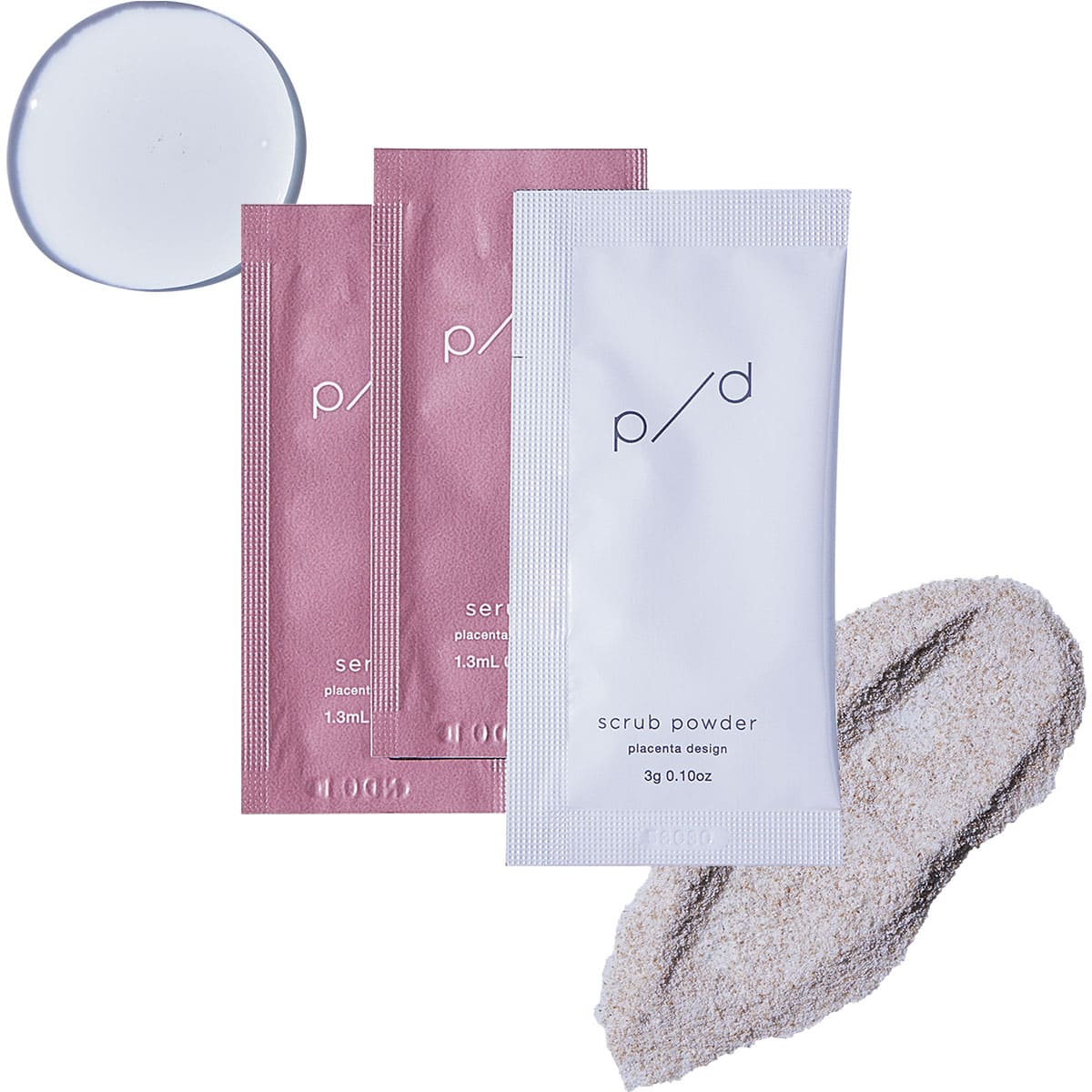 p/d スクラブパウダー 3g×1包、p/d 美容液 1.3ml×2包