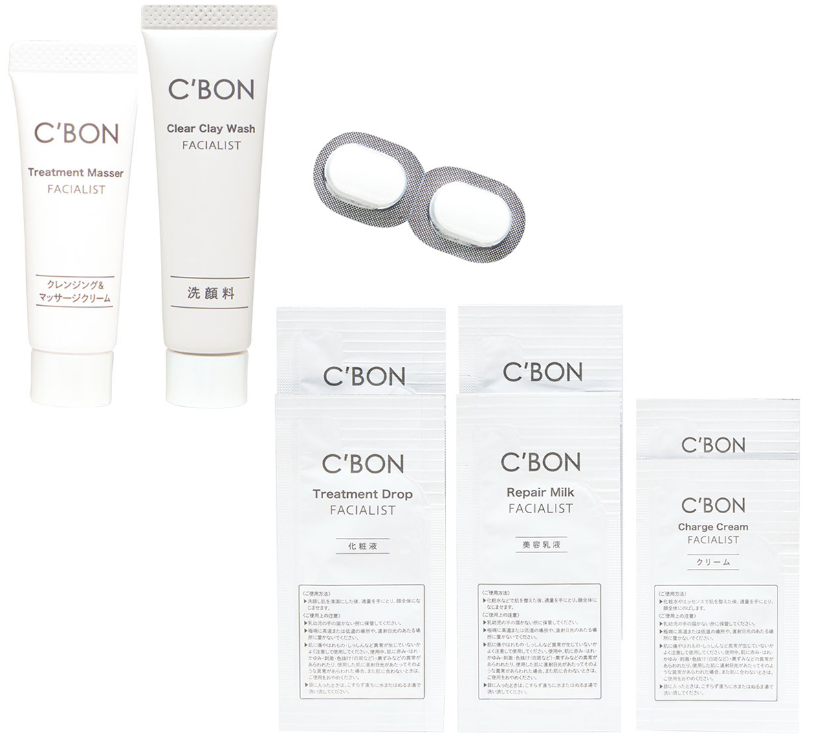 フェイシャリスト トリートメントマセa<クレンジング&マッサージクリーム>10gミニサイズ、クリアクレイウォッシュ<洗顔料>13gミニサイズ、ファーメントパウダーa<酵素洗顔料>0.3g×2ピース、トリートメントドロップ<化粧液>1.5ml×2包 リペアミルク<美容乳液>1.5ml×2包 チャージクリーム<クリーム>0.2g×2包