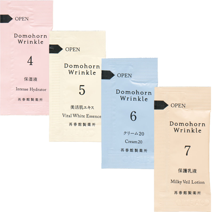 4 保湿液 1.00ml×1回分、5 美活肌エキス[医薬部外品]0.25ml×1回分、6 クリーム20[医薬部外品]0.25g×1回分、7 保護乳液 0.71ml×1回分