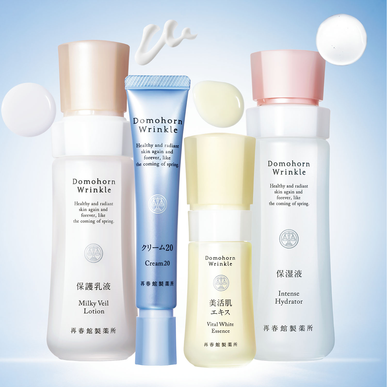 ドモホルンリンクル8点とも「乾燥による小ジワを目立たなくする効果(効能評価試験済み)」が確認され、現在まで継続。