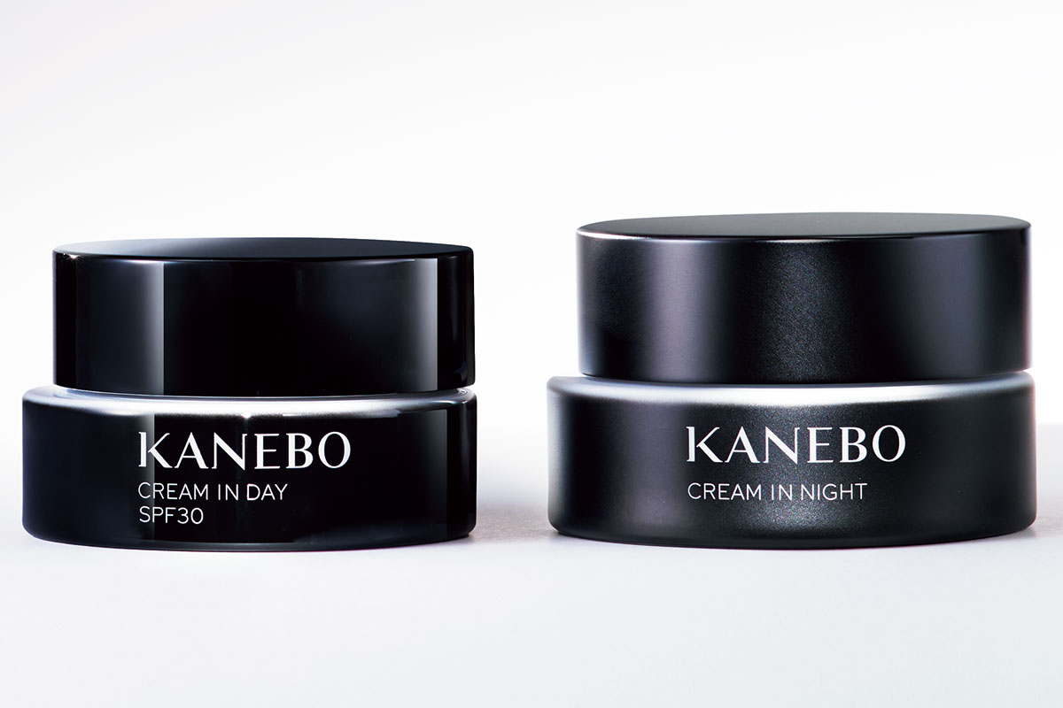 左:紫外線や乾燥ダメージから肌を守り柔らかなツヤ肌へと導く朝クリーム。表情筋の動きにピタリと寄り添うオールデイシールド塗膜技術により夕方まで潤いをキープし、メイク崩れを防ぎます。クリーム イン デイII SPF30・PA+++[医薬部外品]40g¥9,350 右:水分蒸発量の多い夜の肌に密着するオーバーナイトシールド塗膜技術により、睡眠中の肌を乾燥から守ります。クリーム イン ナイトII [医薬部外品]50g¥13,750(ともにカネボウインターナショナルDiv.)