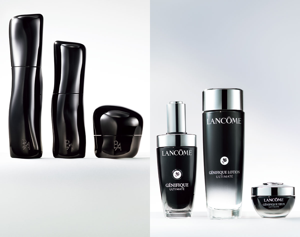 左:美容成分濃度が2.7倍に増え、潤いを浸透させる肌馴染み速度もさらにパワーアップ。B.A ローション120ml ¥23,100 中:輝きと柔軟ハリを目指す“輝きハリベール”による光拡散性が、従来品に比べ約300%向上。ツヤとハリのみなぎる肌に導きます。B.A ミルク80ml ¥23,100 右:形状復元性が約127%に増えた、肌のハリや立体感をサポートする“自己再生ベール”を形成。つるんとなめらかな立体感を目指せる処方になり、ベールの弾力性が約9倍、潤いを抱え込む量が約140%アップ。ヨレてもベールの働きを復元し、長時間肌を守ってくれるクリームになっています。B.A クリーム30ℊ ¥38,500(すべてポーラ)