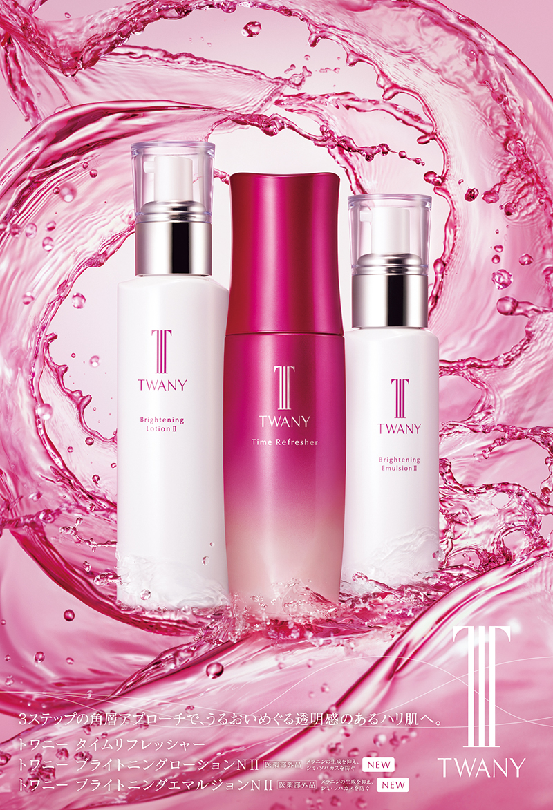 みんなが大好きなトワニーから、新ブライトニングケアがデビュー!紫外線が本格化する前に、シミ予防※1やくすみ※2、透明感※3のケアを一緒に!トワニーのスターアイテム、タイムリフレッシャーから始まる3ステップで、うるおい巡る透明感あるハリ肌へ。