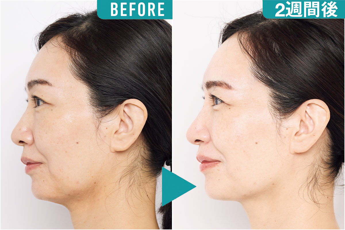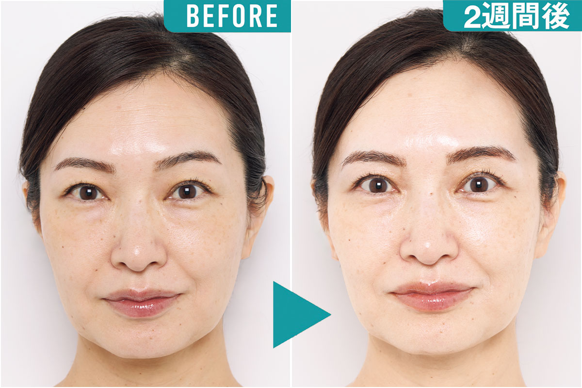 肌印象が底上げされ目の開きも改善。ハリが出たことでフェイスラインもシャープに。日中もうるおいの持続を実感。肌の内側から水分量が上がり真皮のハリ保持、微細炎症抑制が総合的に生じVISIAでは毛穴、赤みの改善が見られました。