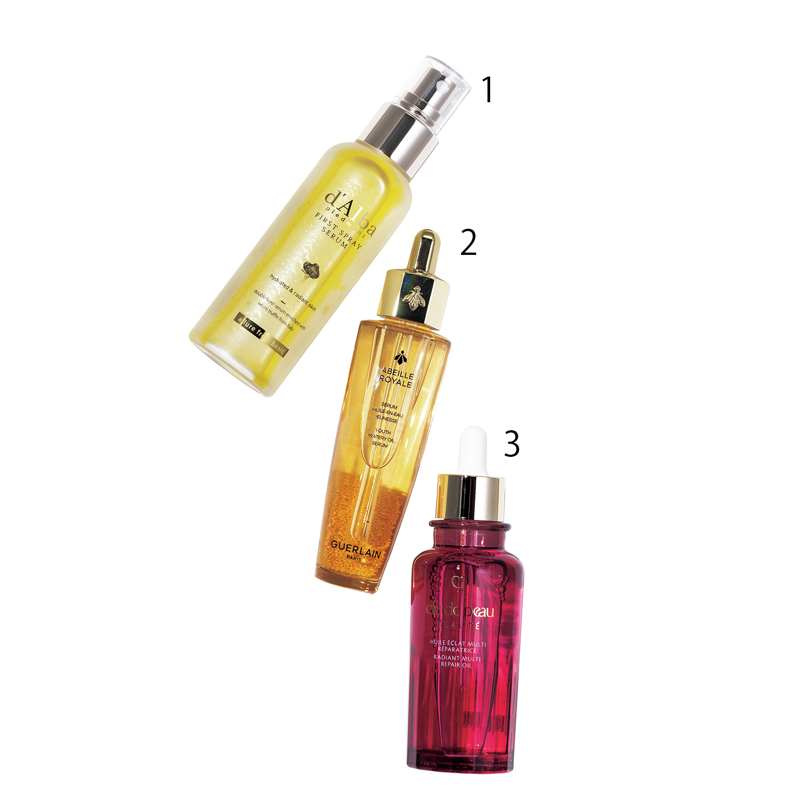 「ベタつかずみずみずしいテクスチャーで、肌にスッと溶け込み浸透。肌がイキイキ」アベイユ ロイヤル ウォータリー オイル セロム 50ml ¥19,800(ゲラン)
