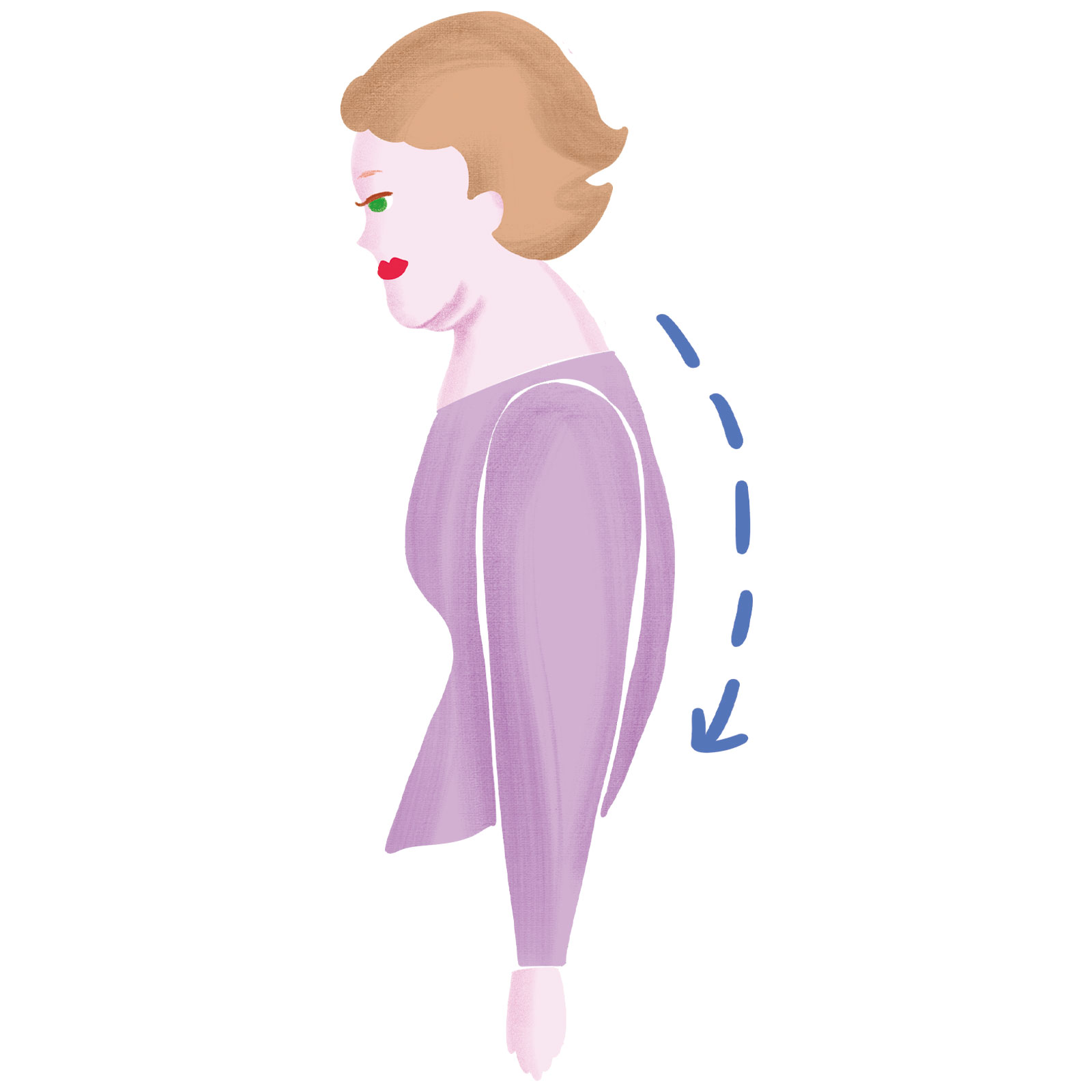 猫背など姿勢が悪いことも舌の位置が下がる原因に。長時間猫背の状態でいると、舌の根元を支える舌骨が下がります。すると顎下の筋肉が引っ張られてたるみにつながり、それが二重顎の原因になるので、スマホを見る時なども目線を上げましょう。