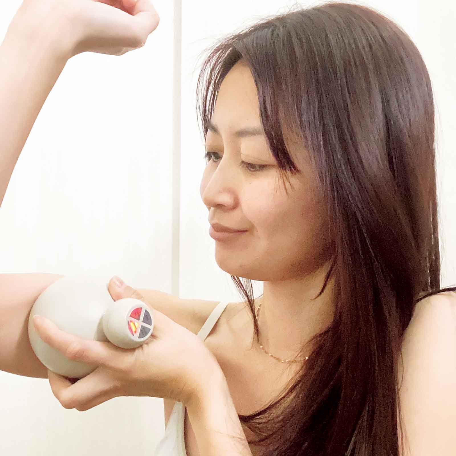 アゴ肉の変化には自分でもびっくり。顔とボディが引き締まっただけでなく、ファンデの色を替えたくなるほどトーンアップしたのは予想外の効果でした。適度な重さがあって圧がかけやすいのもお気に入りポイントです。