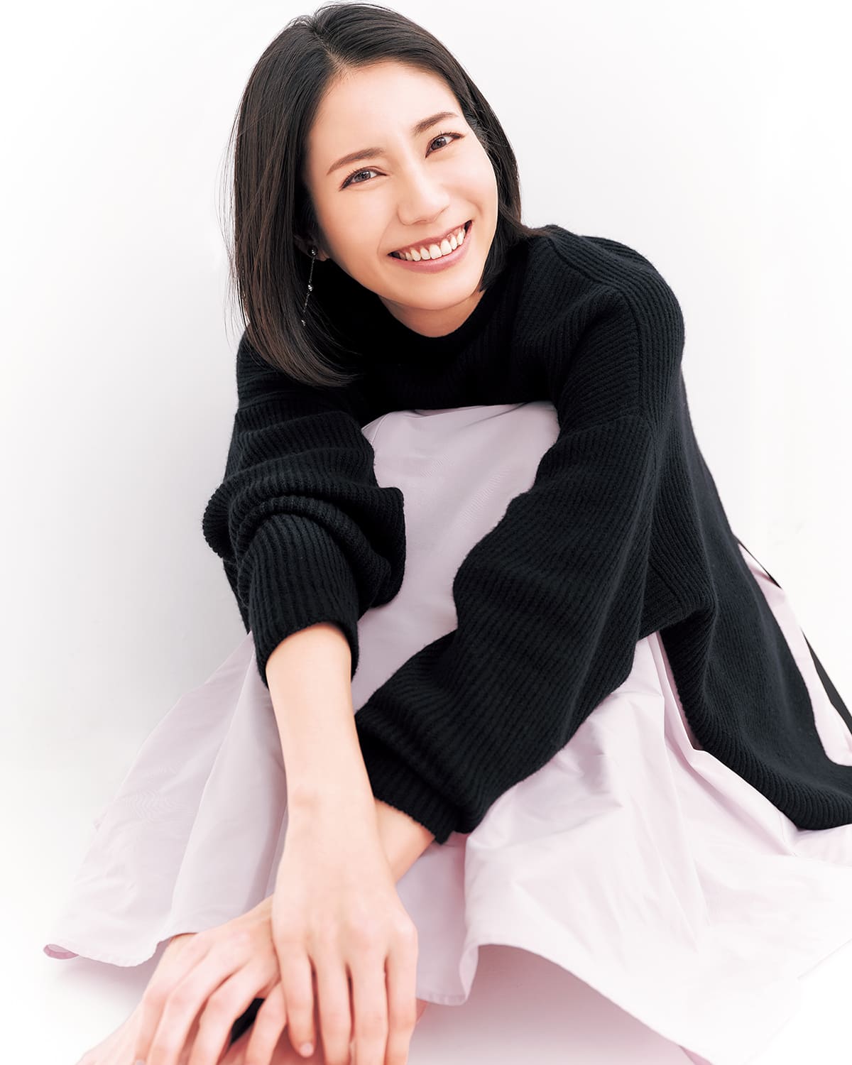 ニット ¥75,900、スカート ¥55,000(ともにアドーア)イヤリング ¥14,300(ラ・キアーヴェ/ドレスアンレーヴ)