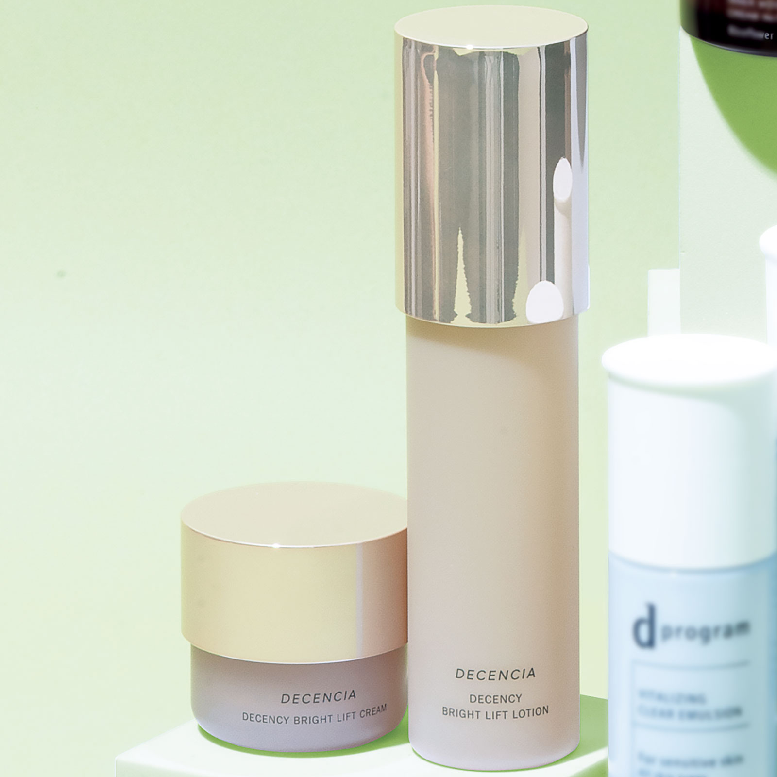 ハリサポート成分、美白+肌荒れ予防の独自成分も配合。ディセンシー ブライトリフト ローション 120ml ¥9,350、同 クリーム 30g ¥10,450(ともにディセンシア)