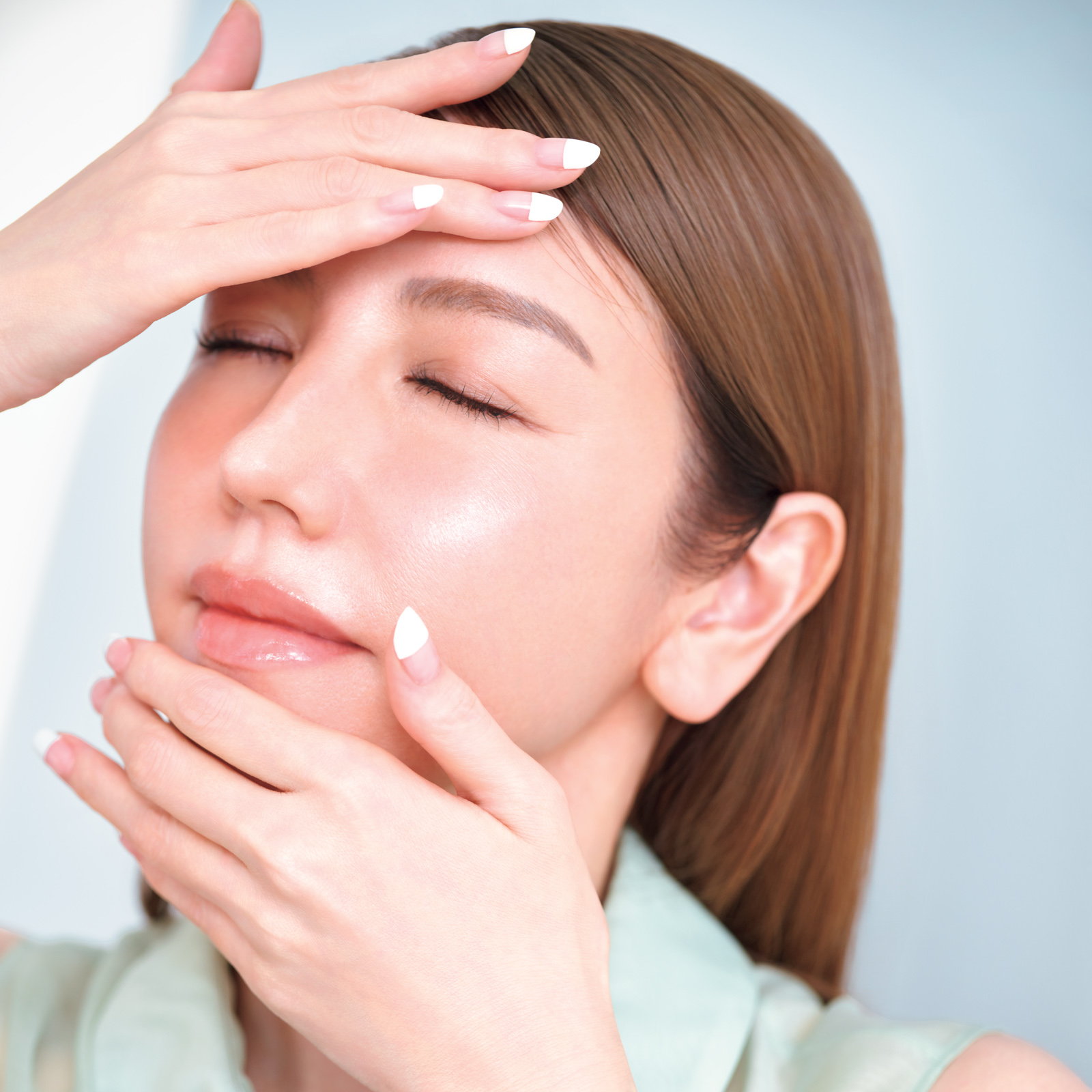顔用オイルは、手のひらに適量をとり、顔の中心から外側に向かってプレスしながら馴染ませ、最後に首、デコルテは上から下へ。