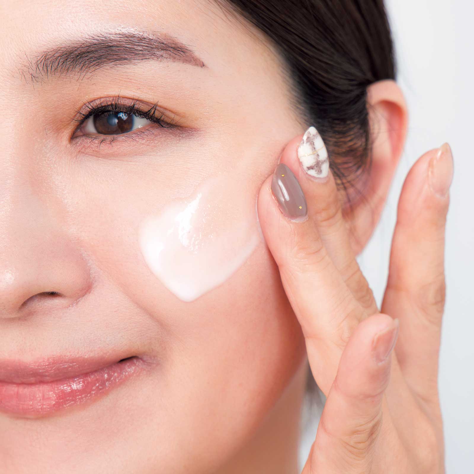 蒸し暑くなる初夏以降は、仕上げのクリームを乳液にチェンジするのもOK。しっとり系乳液で水分は逃がさずキープ。