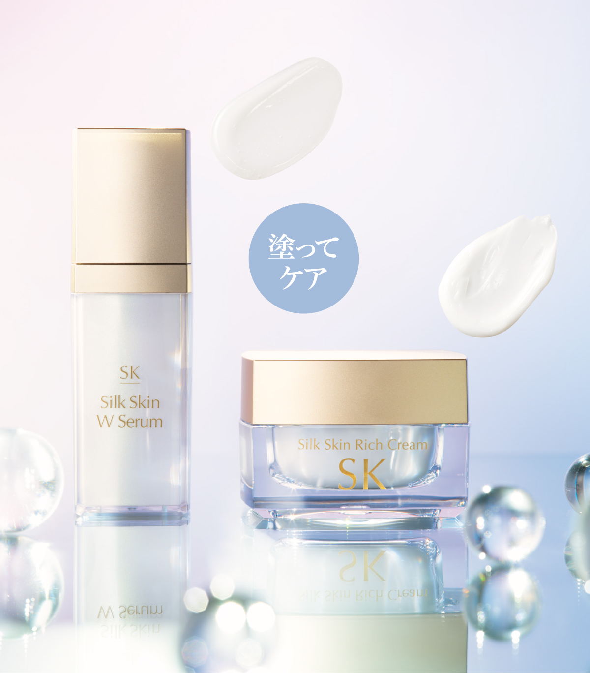 インナーケアにプラスして、SKシルクスキンWセラムとシルクスキンリッチクリームでスキンケアすれば肌の透明感と発光感がUP。もうゆらぎシーズンだからと諦めることなく、美瞳と美肌を叶えることができるんです!