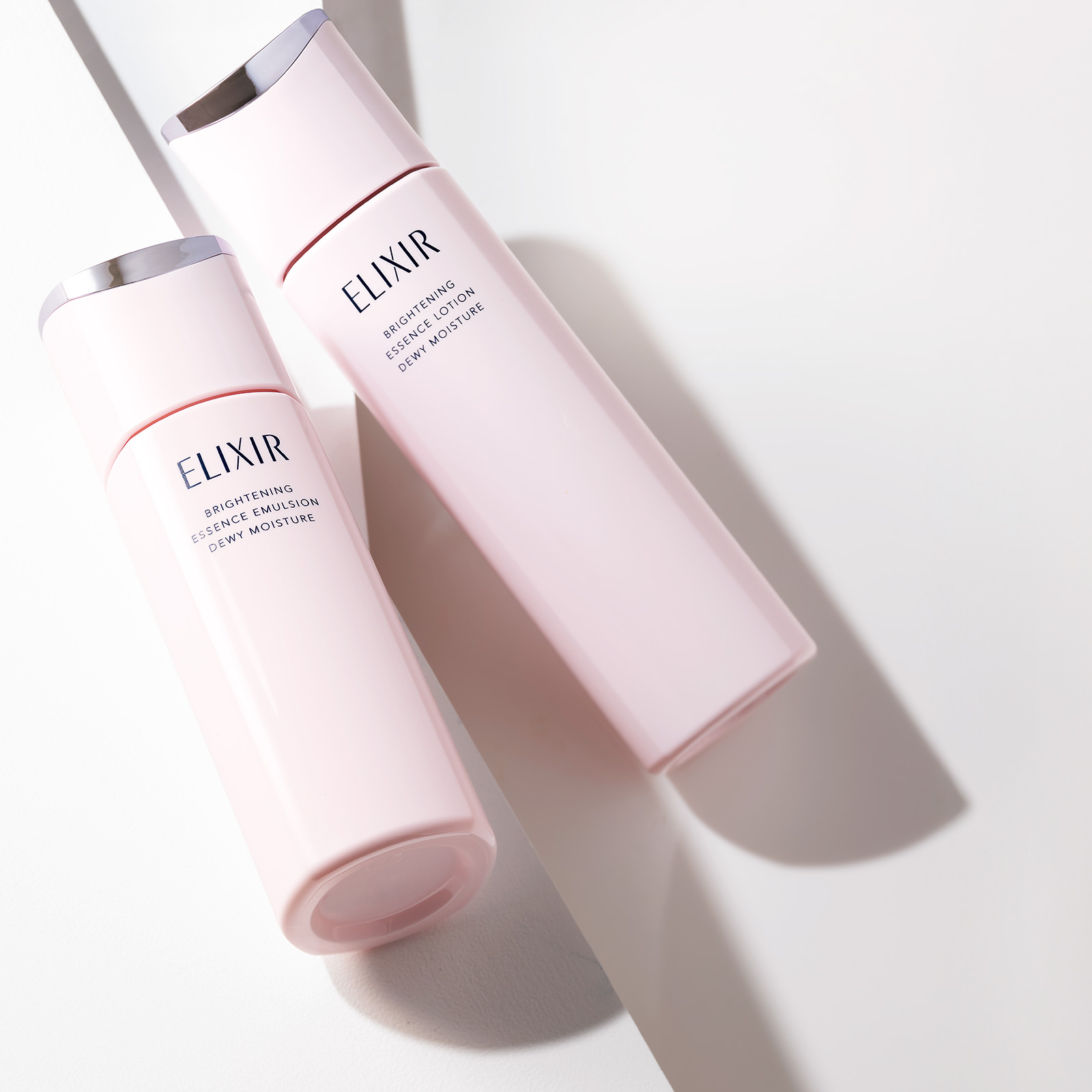 「ベーシックなデイリーケアで、シミや黄ぐすみを防ぎつつ、ハリを高めるハイブリッド感がすごい!/倉田さん」。右:新知見のコラーゲン研究と美白成分の結晶。[医薬部外品]170ml¥3,740左:うるおいを保ち、光を綺麗に反射する肌へ。[医薬部外品]130ml¥4,400※ともに2/21発売〈ともに編集部調べ〉(ともにエリクシール)