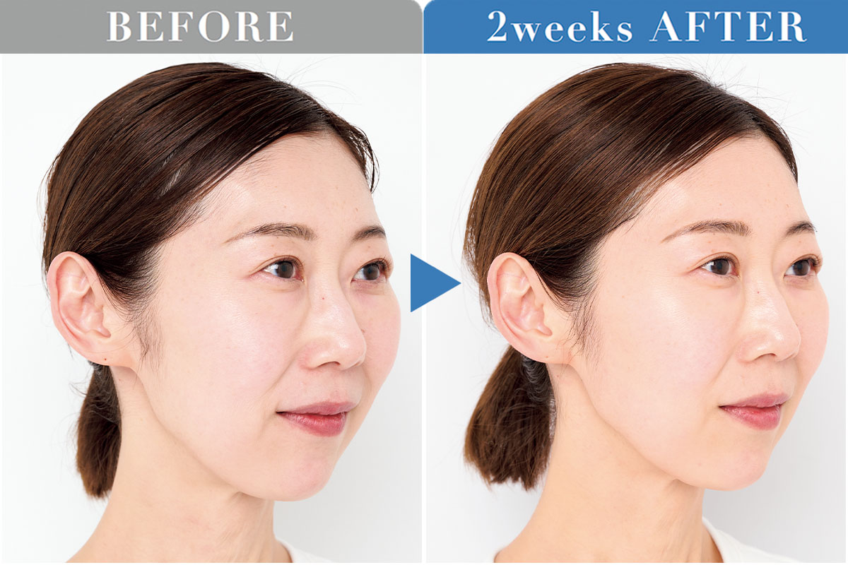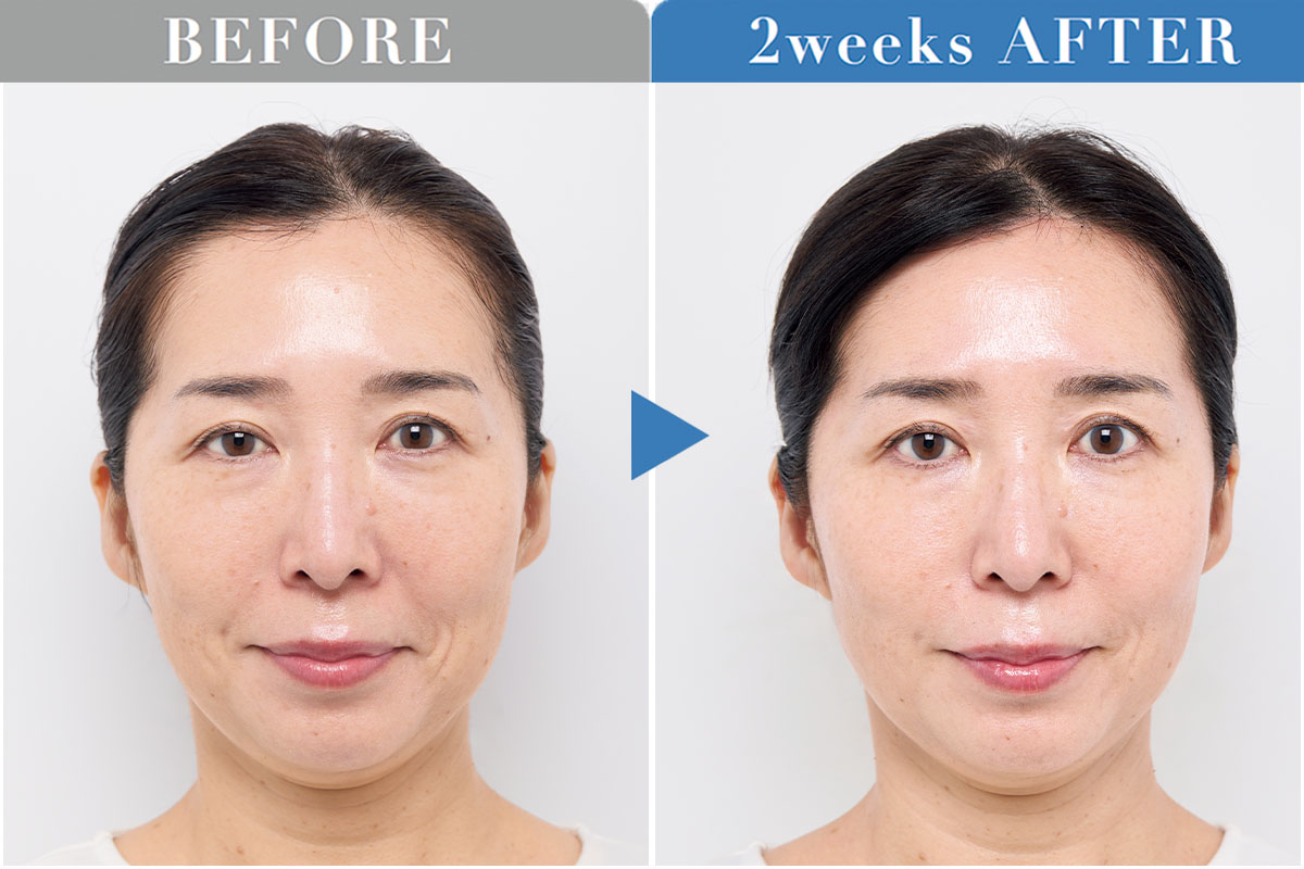 くすみが取れ、ほうれい線が目立たなく。「みずみずしい使用感でUVであることを忘れるほどでした。肌にたっぷり水分を与えてくれるから、光の反射で肌が自然と発光するよう」