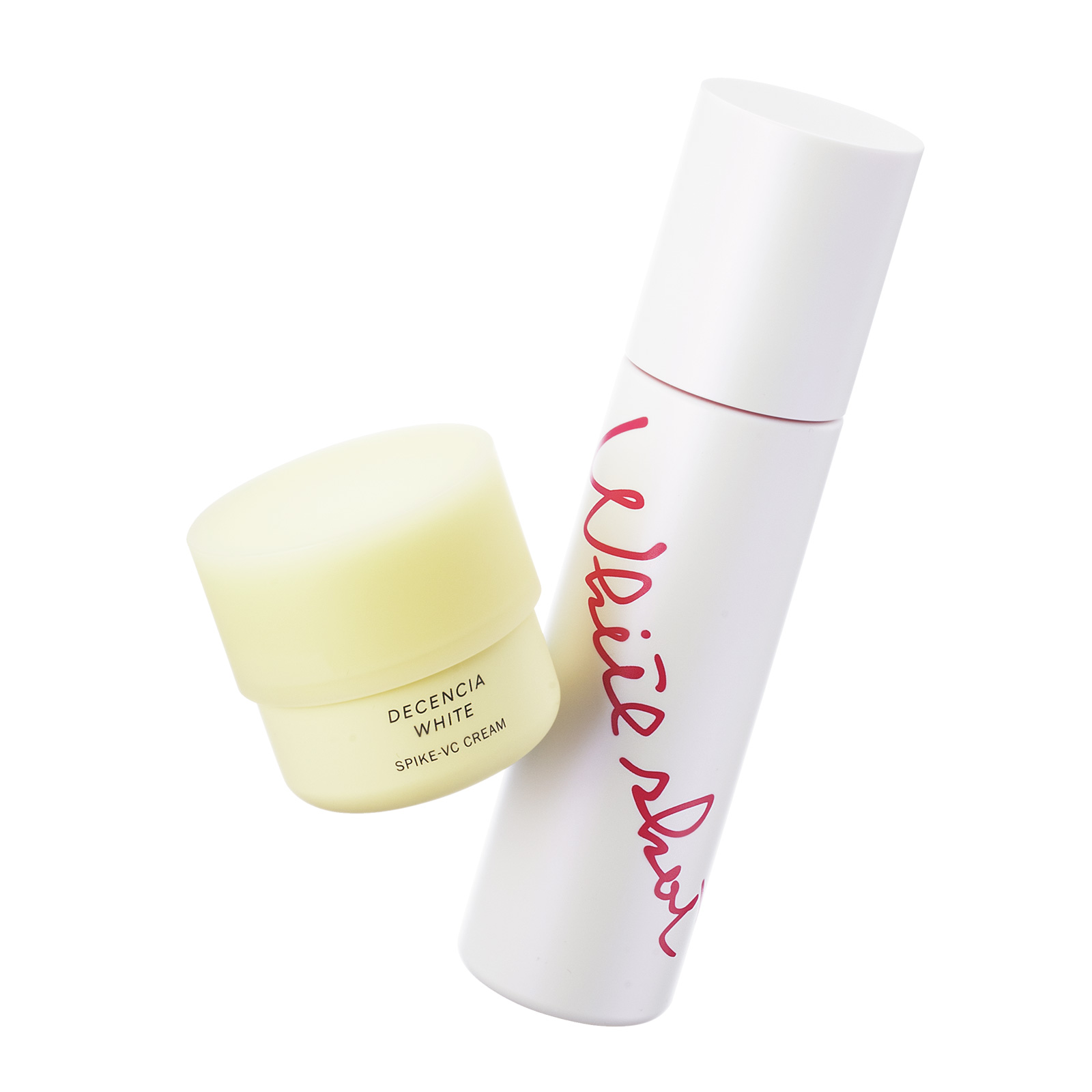 左から:ディセンシアホワイト スパイク-VC クリーム[医薬部外品] 30g ¥6,600 ※3/10発売(ディセンシア)ホワイトショット クリアスキンローション[医薬部外品]150ml ¥9,350(ポーラ)