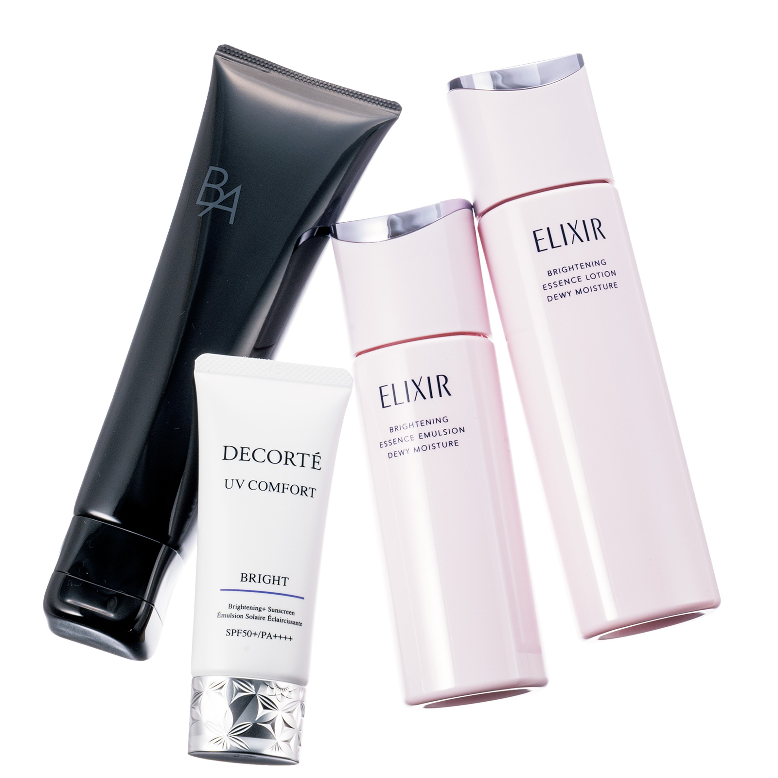 左から:B.A クレンジングクリーム 130g ¥12,100※3/1発売(ポーラ)UV コンフォート ブライト SPF50+・PA++++ [医薬部外品]30ml ¥5,280(コスメデコルテ)エリクシール ブライトニング エマルジョン みずみずしいタイプ ca[医薬部外品]130ml ¥4,400、同 ローション みずみずしいタイプ ca[医薬部外品]170ml ¥3,740※ともに2/21発売〈ともに編集部調べ〉(ともにエリクシール)