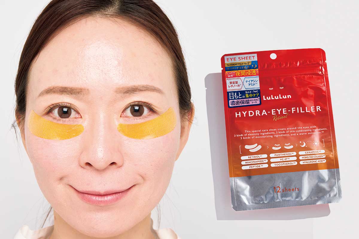 目元悩みに特化した成分のオーバーナイト処方。様々な原因で起こる目元悩みをケアし、目の下にふっくらとしたハリ感をもたらします。ルルルン ハイドラ アイ フィラー 6回分 ¥1,320(Dr.ルルルン)