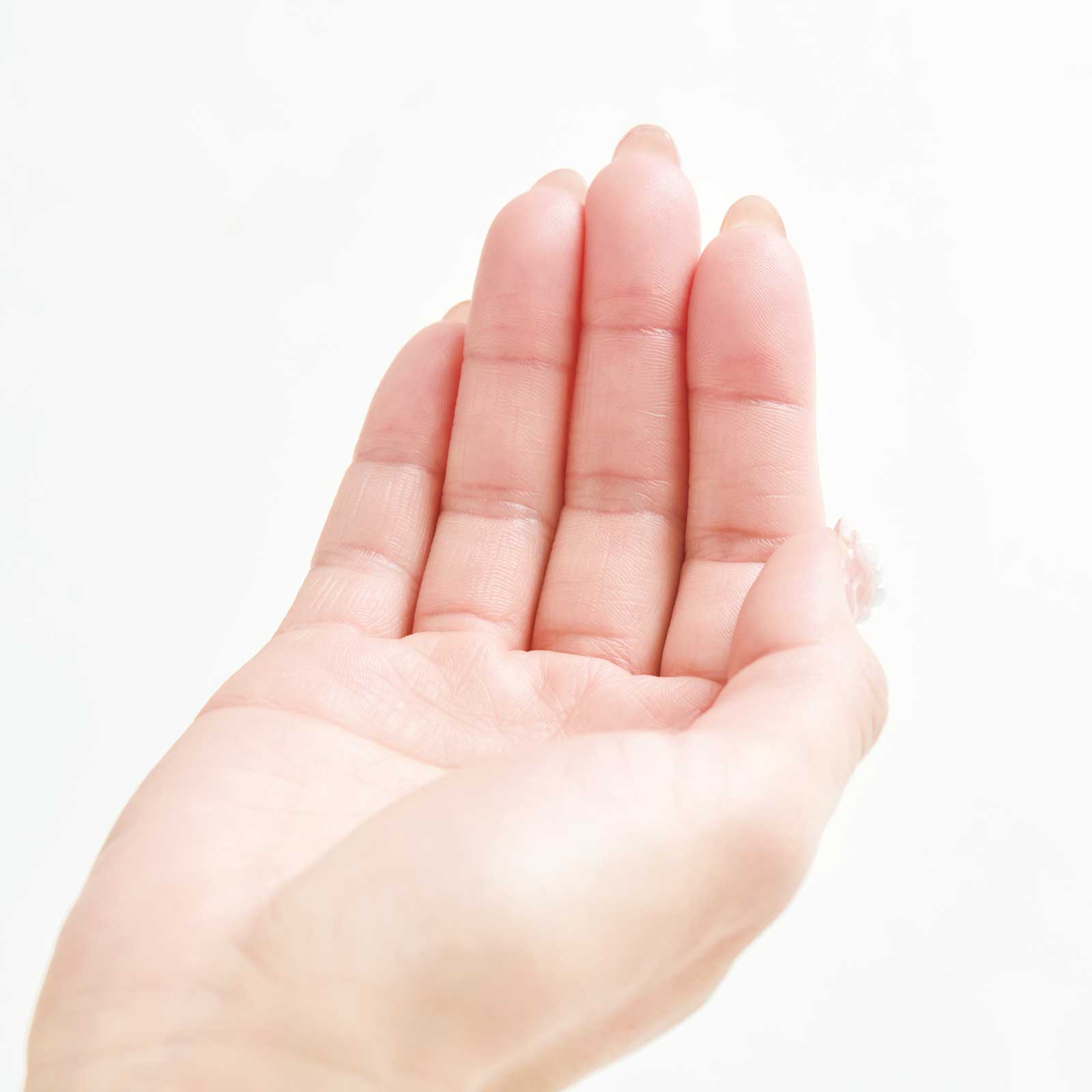 指を揃えて自分のまぶたのカーブに合わせておわん型にセット。指先は力が入ってしまうため指の腹でメイクをオフ。