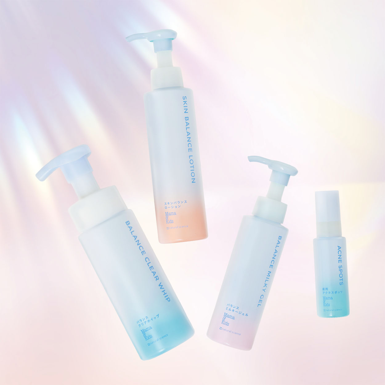 ナチュラルサイエンスの「ママ&キッズ」は親子で楽しむスキンケアブランド。思春期で皮脂分泌が急激に増えて混合肌状態のティーンと、楽しみながら使えるフェイスケアシリーズが手に取りやすいデザインに。毎日のスキンケアで親子の会話も増えそうです。