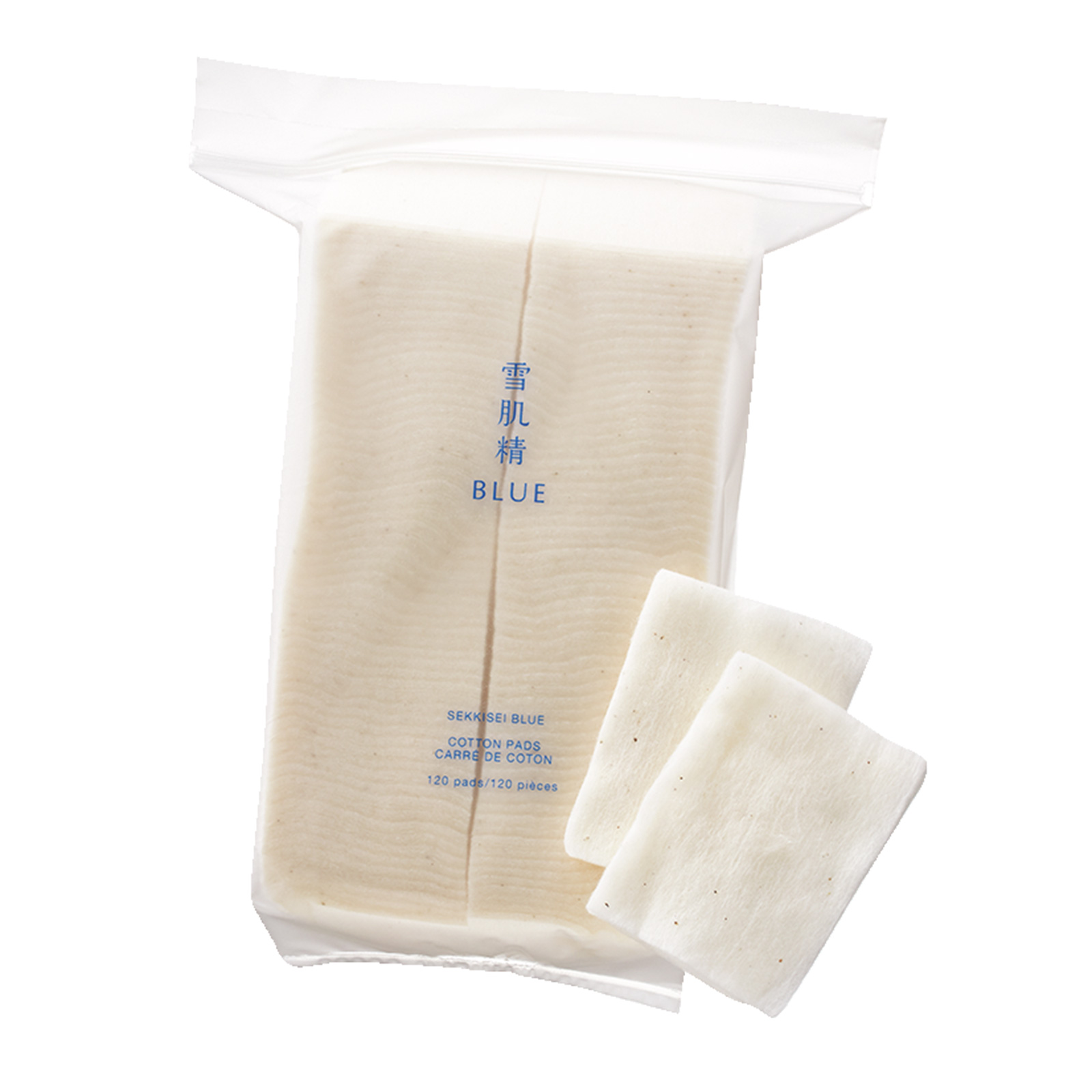 大判で綿100%。赤ちゃんにもOKの高品質オーガニックコットン。 雪肌精 BLUE コットン 120枚¥880〈編集部調べ〉/コーセー